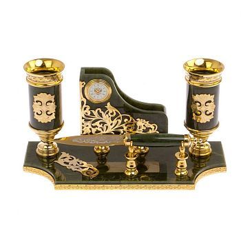 Письменный прибор "Меценат" из нефрита с золотым и никелевым покрытием