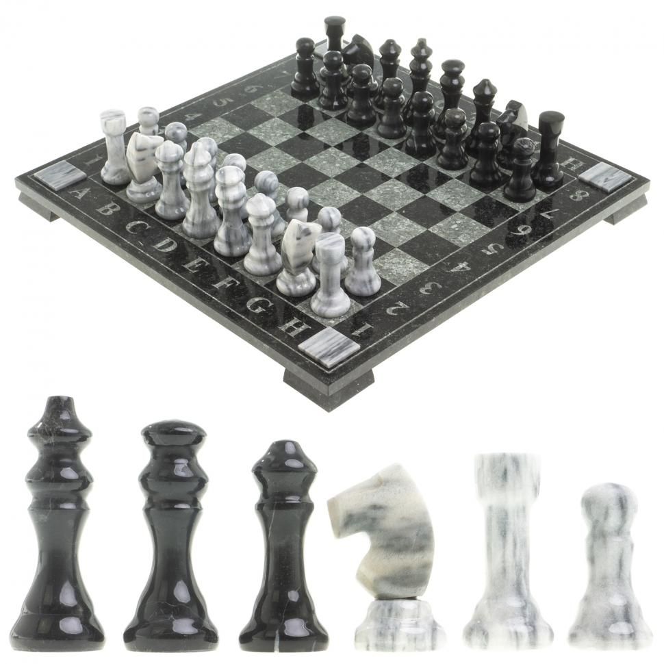 -Шахматы из камня "Турнирные", доска 36х36 см (змеевик, мрамор)