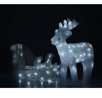 Фигура акрил. "Сани с оленем" (Олень: 45х48х14 см, Сани: 42х22х20 см.)