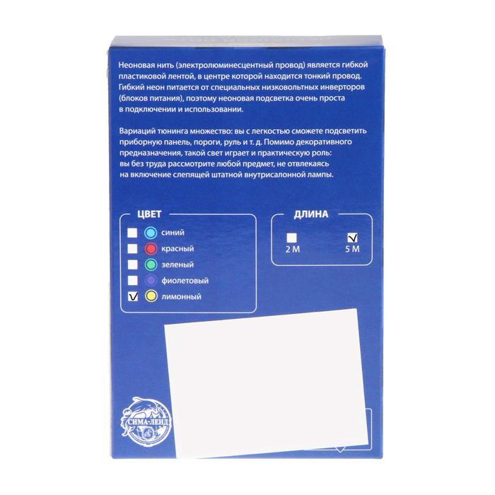 Неоновая нить Cartage для подсветки салона, адаптер питания 12 В, 5 м, желтый