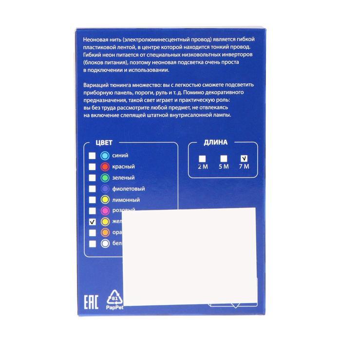 Неоновая нить Cartage для подсветки салона, адаптер питания 12 В, 7 м, желтый