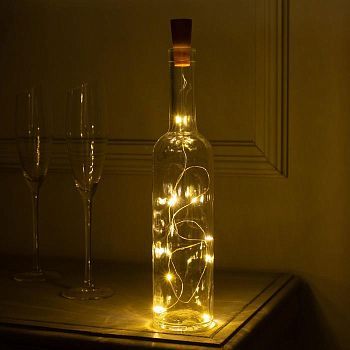 Гирлянда «Нить» 1 м роса с пробкой, IP20, серебристая нить, 10 LED, свечение тёплое белое, LR44х3