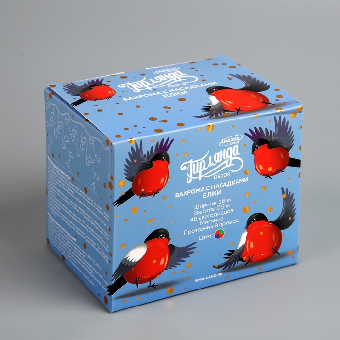 Гирлянда «Бахрома» 1.8 × 0.5 м с насадками «Ёлки», IP20, прозрачная нить, 48 LED, свечение мульти (RG/RB), мигание, 220 В