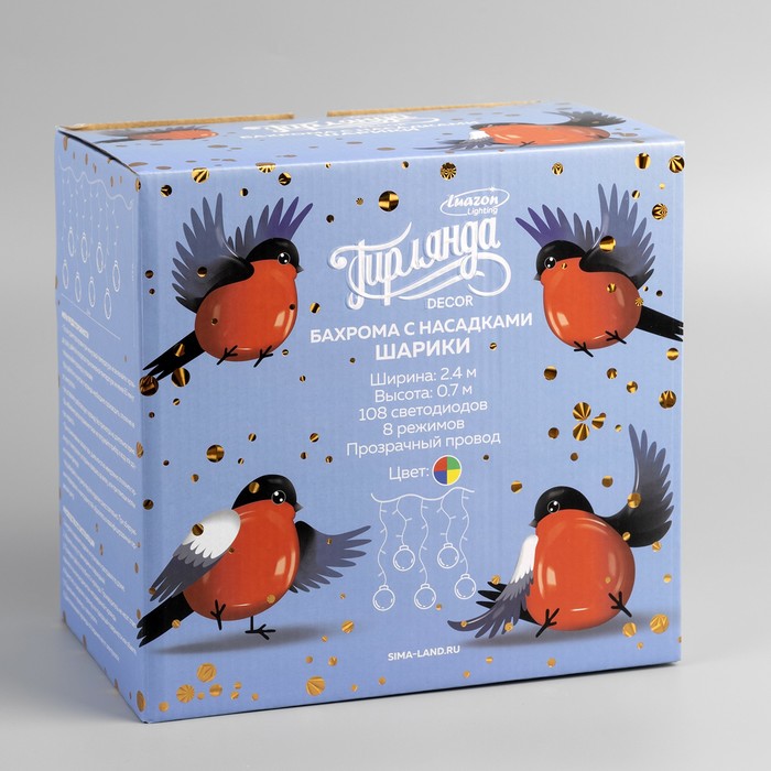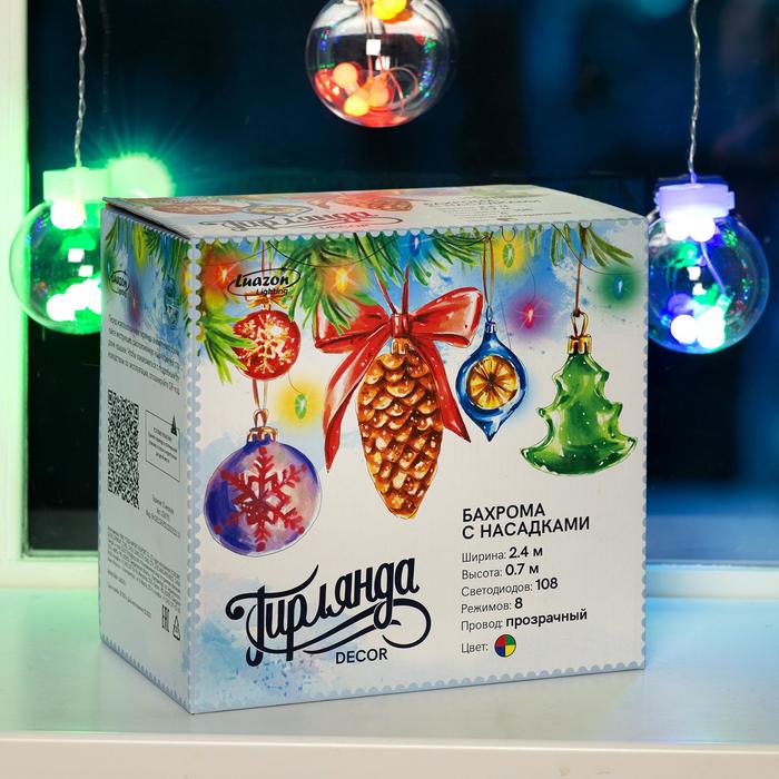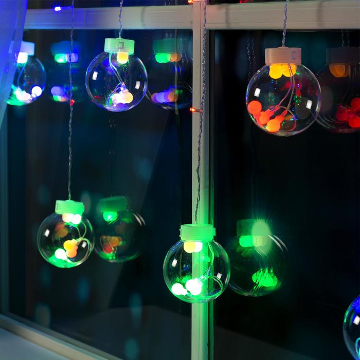 Гирлянда «Бахрома» 2.4 × 0.7 м с насадками «Шарики», IP20, прозрачная нить, 108 LED, свечение мульти, 8 режимов, 220 В