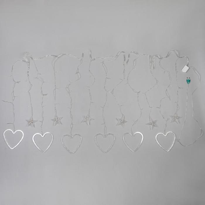Гирлянда «Бахрома» 2.4 × 0.9 м с насадками «Сердце», IP20, прозрачная нить, 186 LED, свечение мульти, 8 режимов, 220 В
