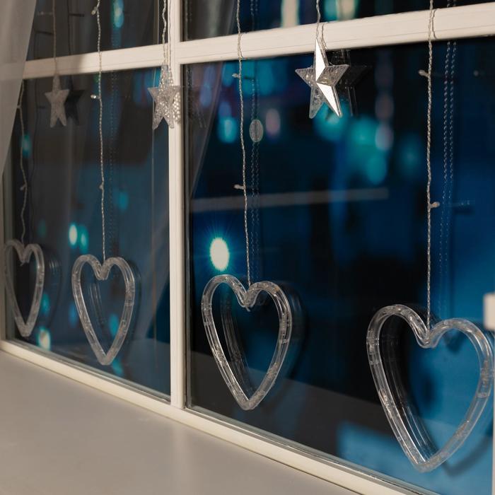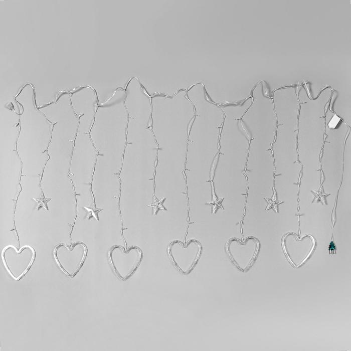 Гирлянда «Бахрома» 2.4 × 0.9 м с насадками «Сердце», IP20, прозрачная нить, 186 LED, свечение тёплое белое, 8 режимов, 220 В