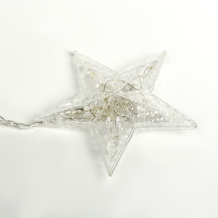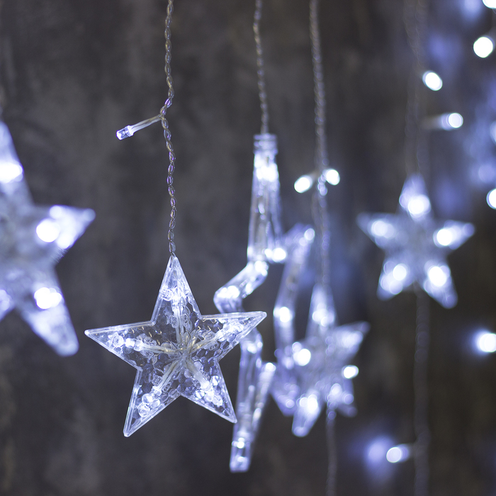 Гирлянда «Бахрома» 2.4 × 0.9 м с насадками «Звёзды», IP20, прозрачная нить, 138 LED, свечение белое, 8 режимов, 220 В