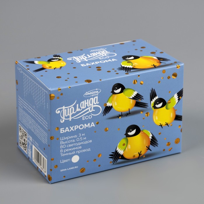 Гирлянда «Бахрома» 3 × 0.5 м, IP20, тёмная нить, 80 LED, свечение белое, 8 режимов, 220 В