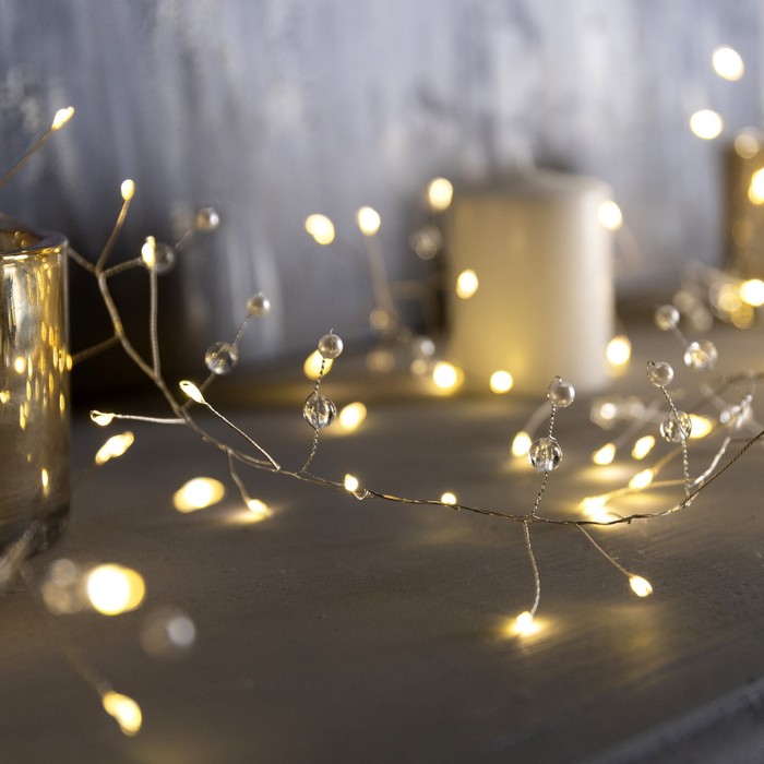 Гирлянда «Мишура» 2 м роса с насадками «Шарики», IP20, серебристая нить, 100 LED, свечение тёплое белое, ААх3