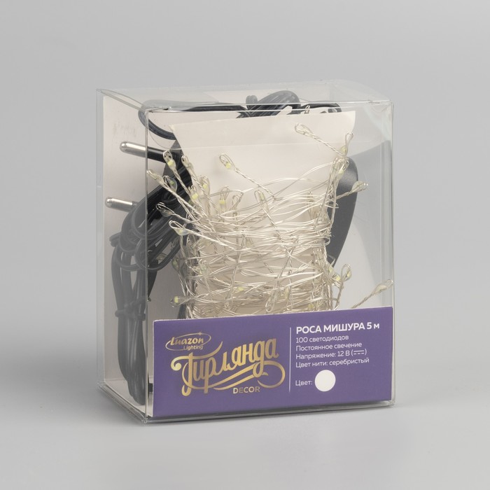 Гирлянда «Мишура» 5 м роса, IP20, серебристая нить, 100 LED, свечение белое, 12 В