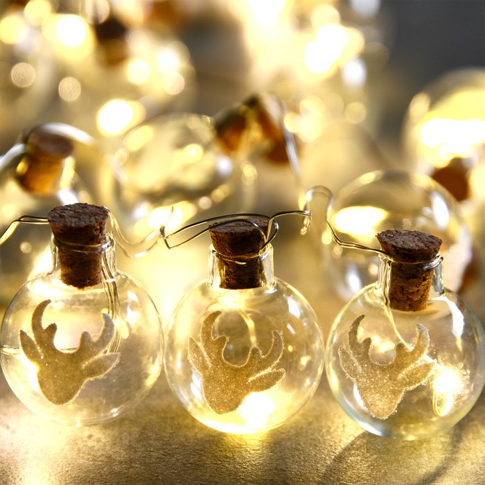 Гирлянда «Нить» 1.6 м с насадками «Шарики с оленем», IP20, прозрачная нить, 15 LED, свечение тёплое белое, ААх2