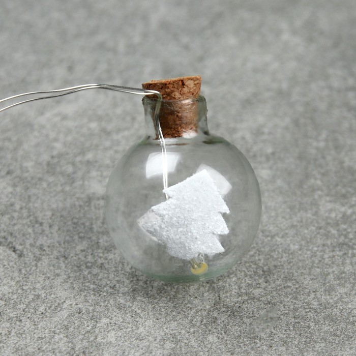 Гирлянда «Нить» 1.6 м с насадками «Шарики с ёлочкой», IP20, прозрачная нить, 15 LED, свечение тёплое белое, ААх2