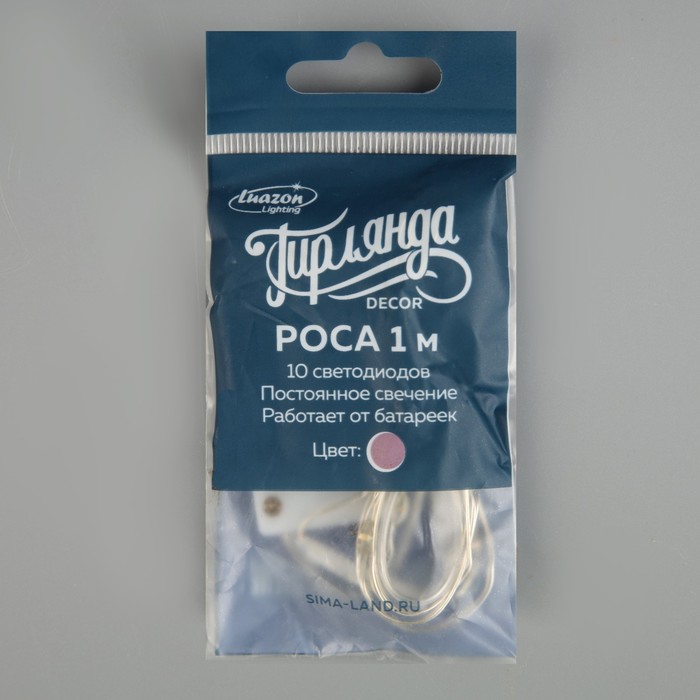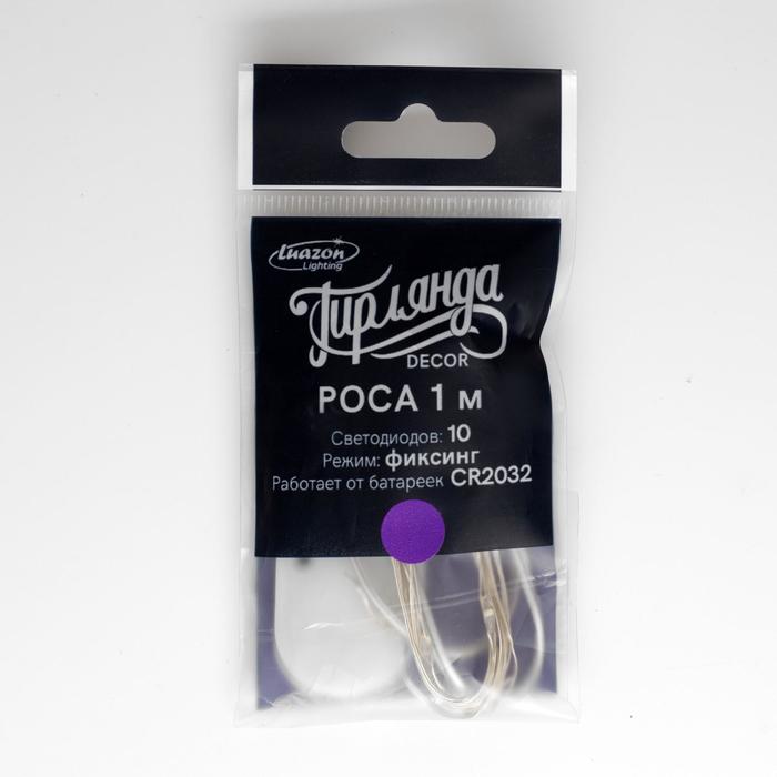 Гирлянда «Нить» 1 м роса, IP20, серебристая нить, 10 LED, свечение фиолетовое, CR2032х2