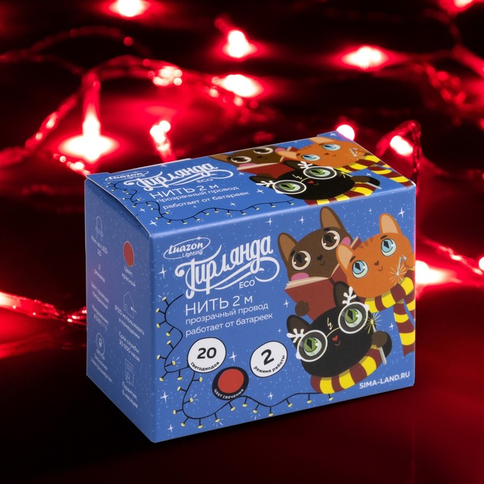 Гирлянда «Нить» 2 м, IP20, прозрачная нить, 20 LED, свечение красное, 2 режима, AAх3