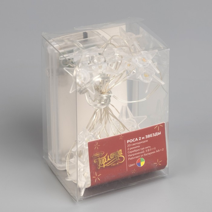 Гирлянда «Нить» 2 м роса с насадками «Звезда», IP20, серебристая нить, 20 LED, свечение мульти, 2 режима, ААх2