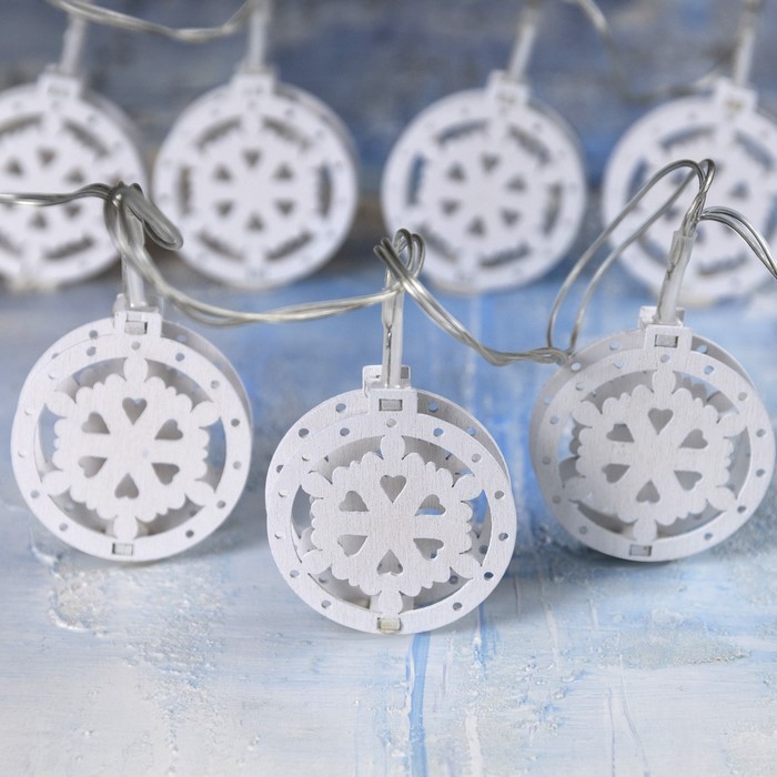 Гирлянда «Нить» 2 м с насадками «Снежинка», IP20, прозрачная нить, 10 LED, свечение тёплое белое, AAх2
