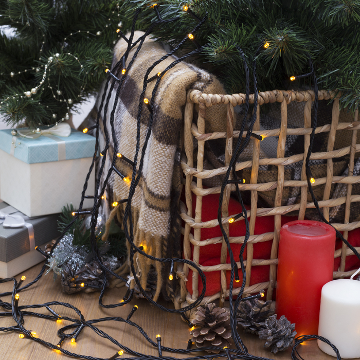 Гирлянда «Нить» 20 м, IP20, тёмная нить, 200 LED, свечение жёлтое, 8 режимов, 220 В