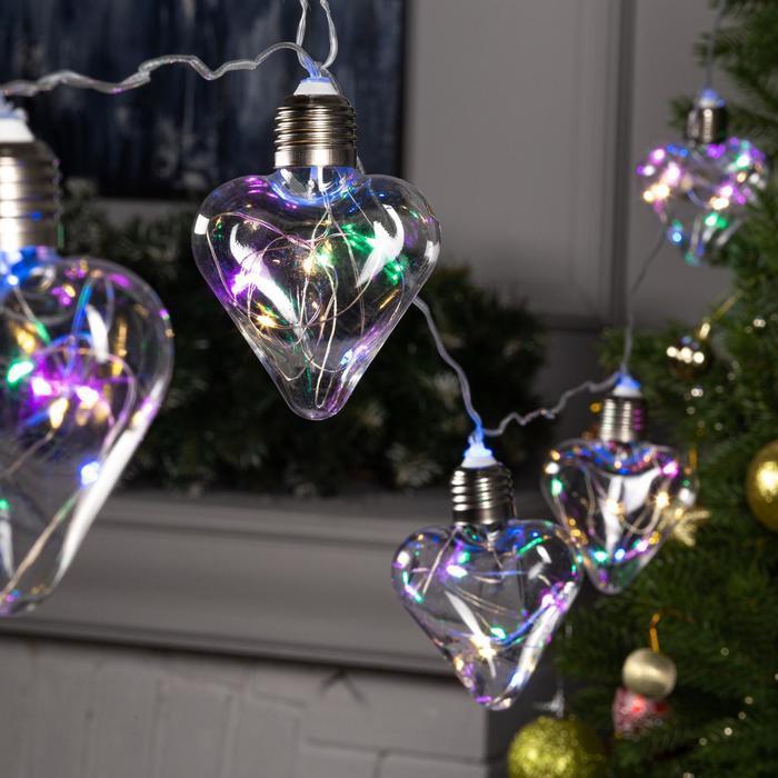 Гирлянда "Нить" 3 м с насадками "Лампочки сердца", IP20, прозрачная нить, 80 LED, свечение мульти, 8 режимов, 220 В