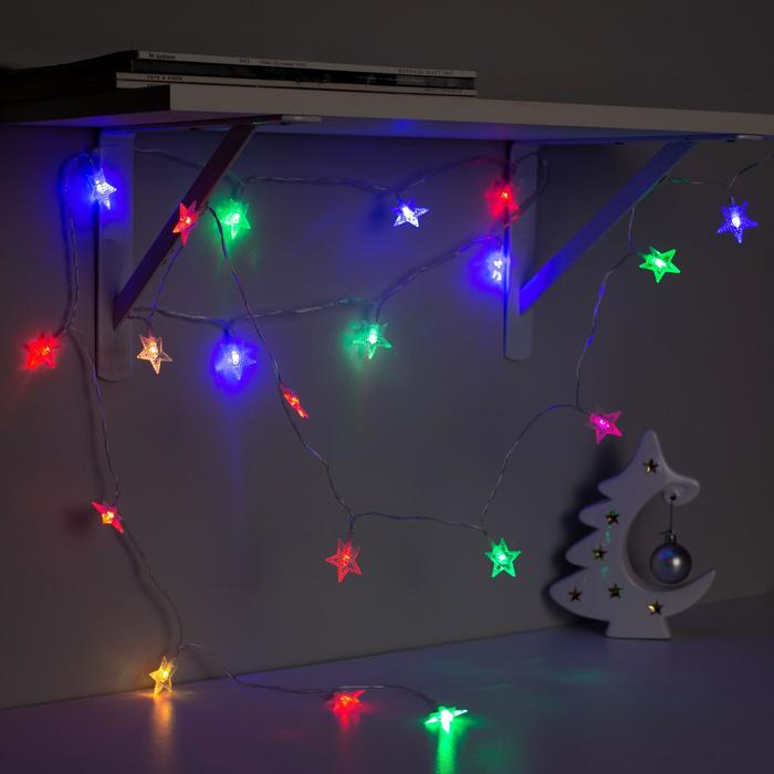 Гирлянда «Нить» 3 м с насадками «Звёзды», IP20, прозрачная нить, 20 LED, свечение мульти (RG/RB), мигание, USB