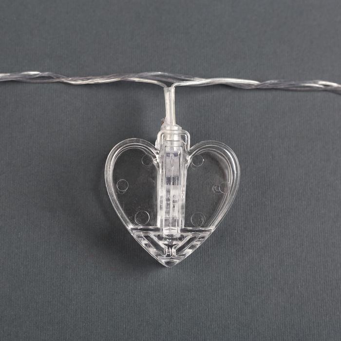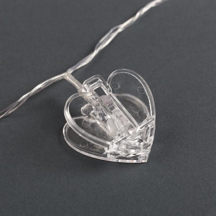 Гирлянда «Нить» 4.5 м с насадками «Прищепки-сердце», IP20, прозрачная нить, 20 LED, свечение красное, 220 В