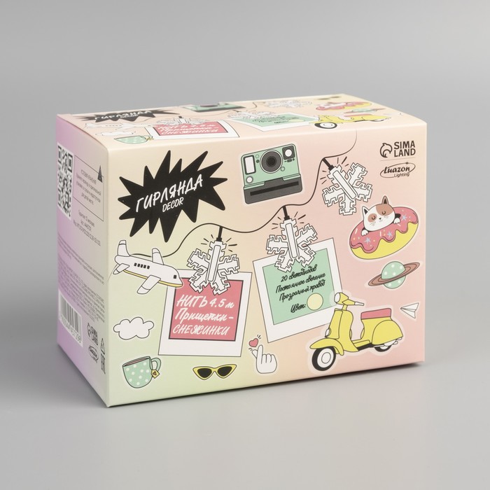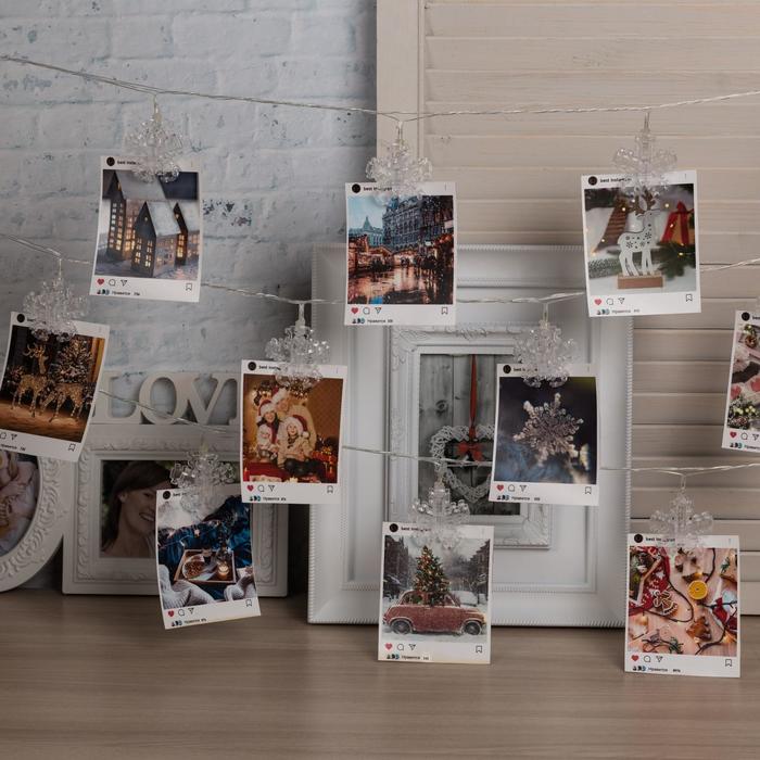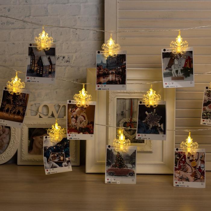Гирлянда «Нить» 4.5 м с насадками «Прищепки-снежинки», IP20, прозрачная нить, 20 LED, свечение тёплое белое, 220 В