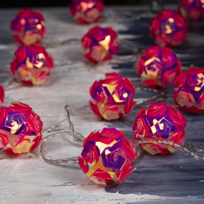 Гирлянда «Нить» 4.5 м с насадками «Цветочные шары», IP20, прозрачная нить, 15 LED, свечение белое, 220 В