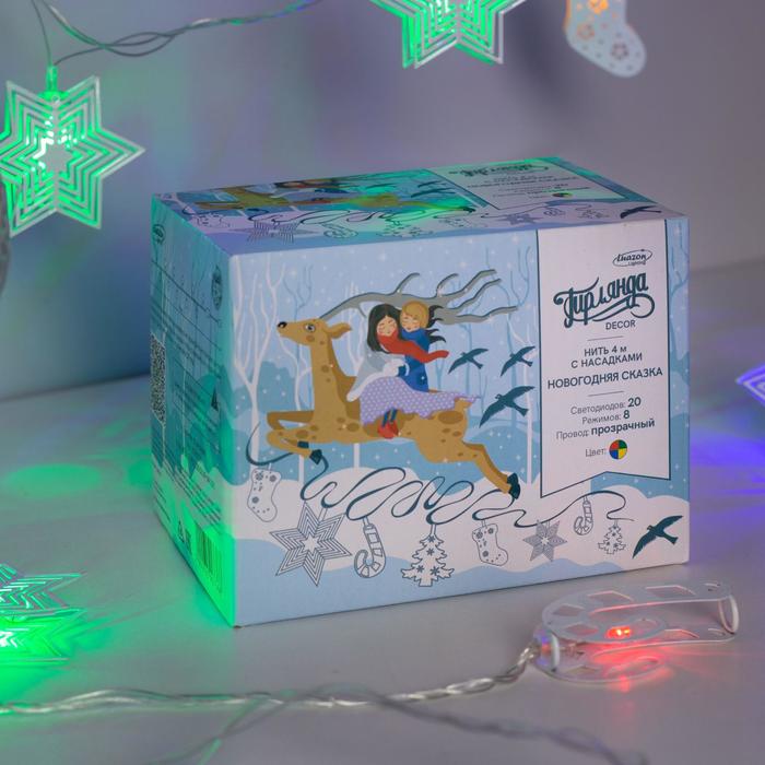 Гирлянда «Нить» 4 м с насадками «Новогодняя сказка», IP20, прозрачная нить, 20 LED, свечение мульти, 8 режимов, 220 В
