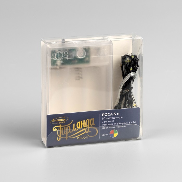 Гирлянда «Нить» 5 м роса, IP20, чёрная нить, 50 LED, свечение мульти, 2 режима, AAх3