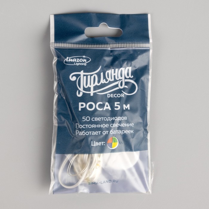Гирлянда «Нить» 5 м роса, IP20, серебристая нить, 50 LED, свечение мульти, CR2032х2