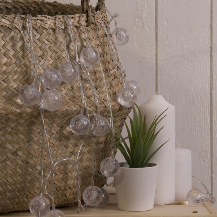 Гирлянда «Нить» 5 м с насадками «Футбольный мяч», IP20, прозрачная нить, 20 LED, свечение белое, 8 режимов, 220 В