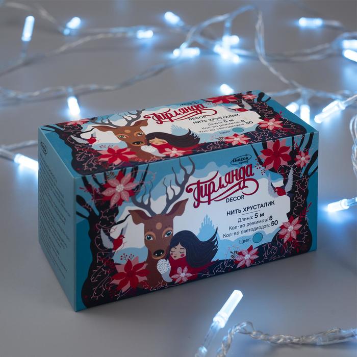 Гирлянда «Нить» 5 м с насадками «Хрусталики», IP20, прозрачная нить, 50 LED, свечение аквамарин, 8 режимов, 220 В