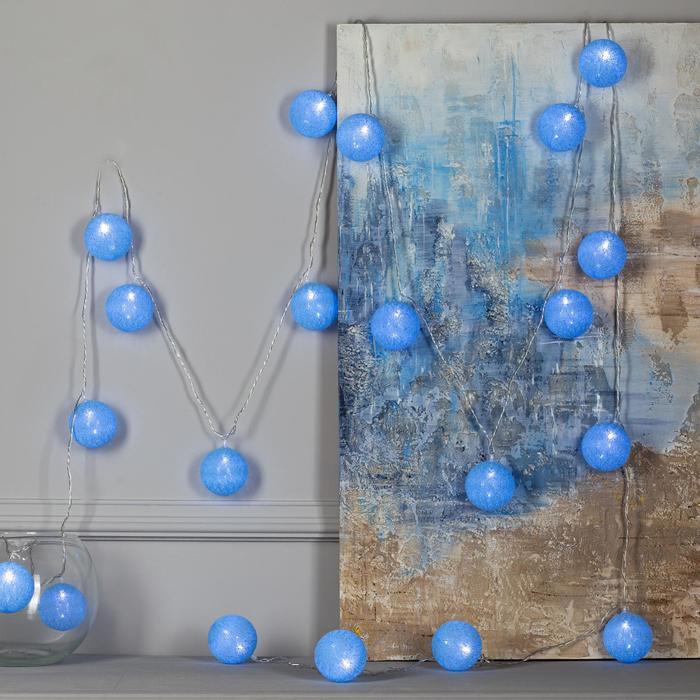 Гирлянда «Нить» 5 м с насадками «Клубки голубые», IP20, прозрачная нить, 20 LED, свечение белое, 220 В