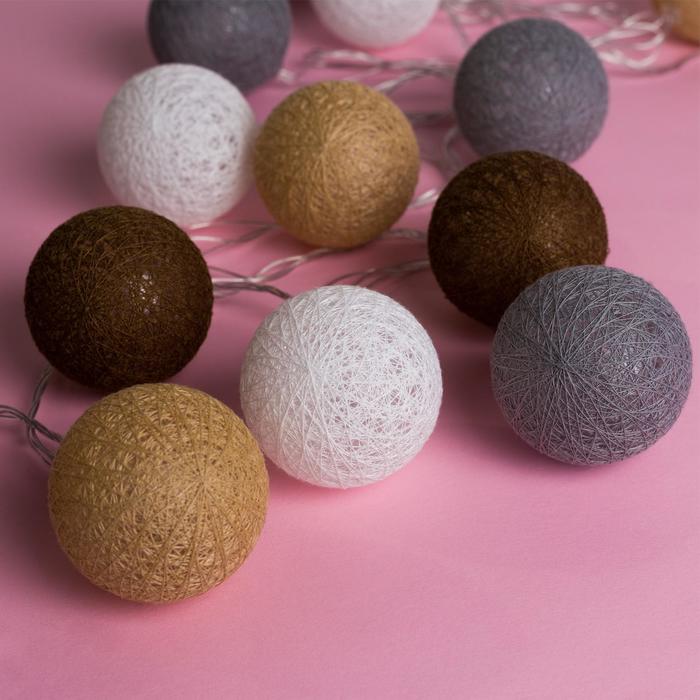 Гирлянда «Нить» 5 м с насадками «Клубки кремовые», IP20, прозрачная нить, 20 LED, свечение тёплое белое, 220 В