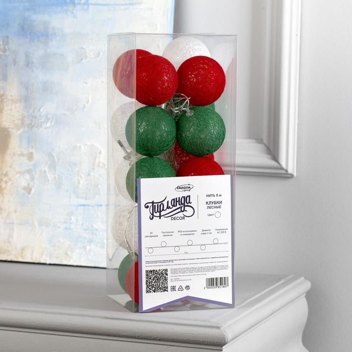 Гирлянда «Нить» 5 м с насадками «Клубки лесные», IP20, прозрачная нить, 20 LED, свечение белое, 220 В