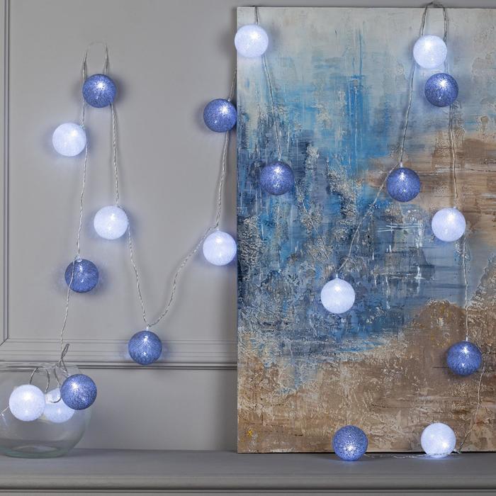 Гирлянда «Нить» 5 м с насадками «Клубки снежные», IP20, прозрачная нить, 20 LED, свечение белое, 220 В