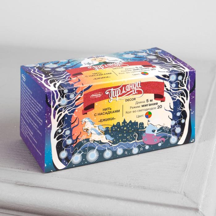 Гирлянда «Нить» 5 м с насадками «Ёжики», IP20, прозрачная нить, 20 LED, свечение мульти (RG/RB), мигание, 220 В