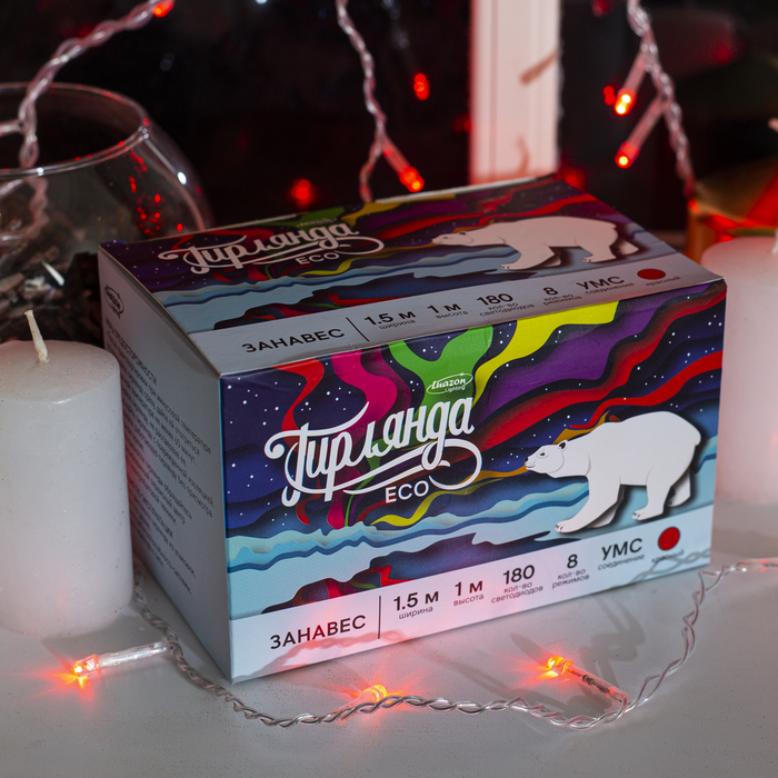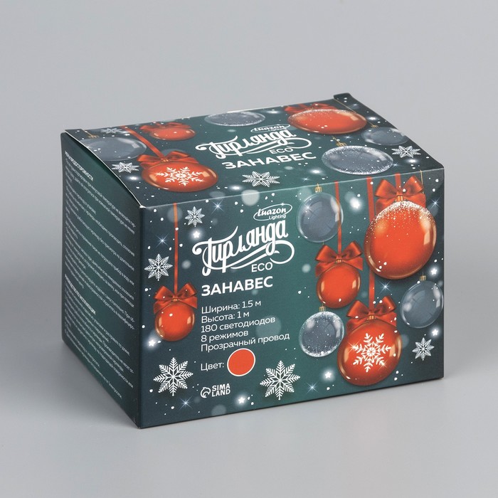 Гирлянда «Занавес» 1.5 × 1 м, IP20, прозрачная нить, 180 LED, свечение красное, 8 режимов, 220 В
