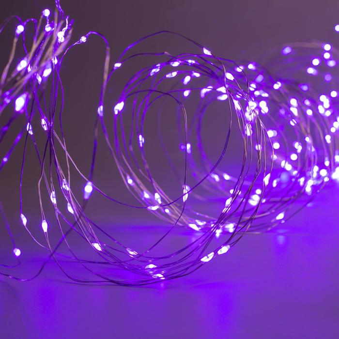 Гирлянда «Занавес» 2.8 × 3 м роса на крючках, с пультом, IP20, серебристая нить, 300 LED, свечение фиолетовое, 8 режимов, USB
