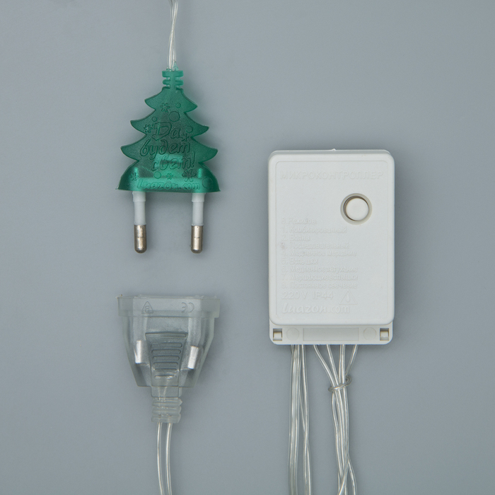 Гирлянда «Занавес» 2 х 1.5 м с насадками «Ёжики», IP20, прозрачная нить, 360 LED, свечение белое, 8 режимов, 220 В