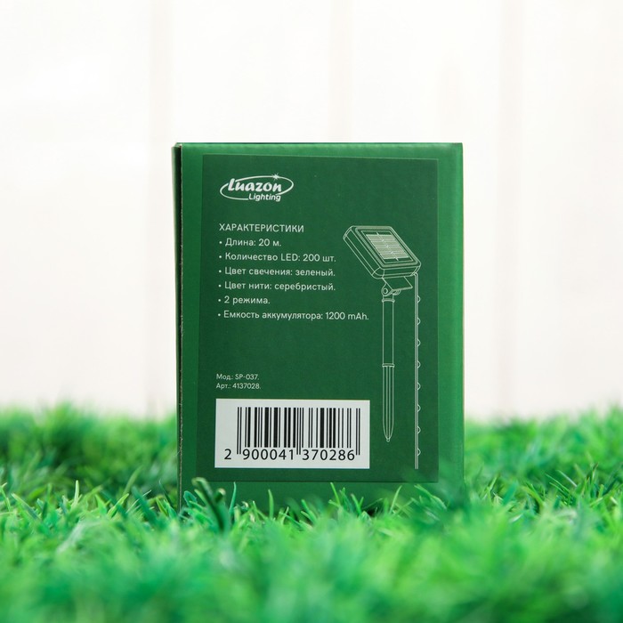 Гирлянда «Нить» 20 м роса, IP44, серебристая нить, 200 LED, свечение зелёное, 2 режима, солнечная батарея