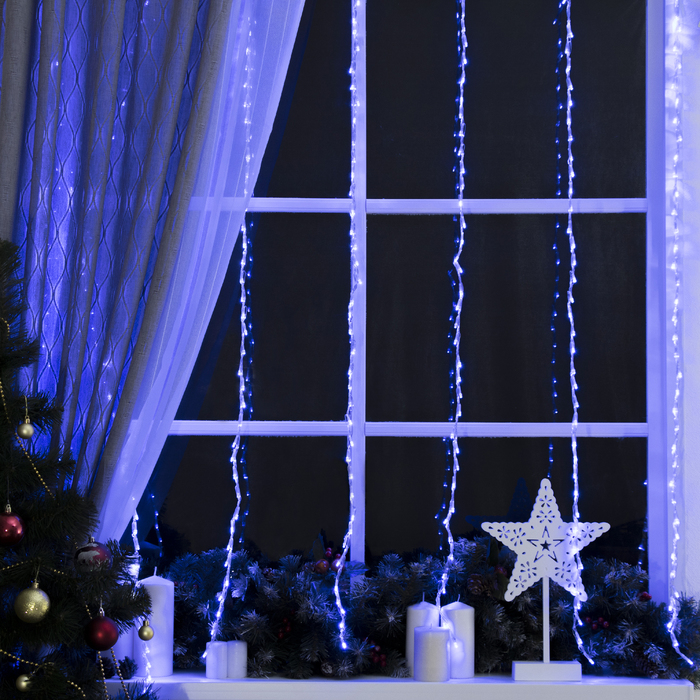 Гирлянда «Водопад» 2 × 1.5 м, IP44, прозрачная нить, 400 LED, свечение синее, 8 комбинаций режимов, 220 В