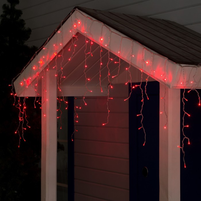 Гирлянда «Бахрома» 3 × 0.6 м, IP44, УМС, прозрачная нить, 160 LED, свечение красное, 220 В