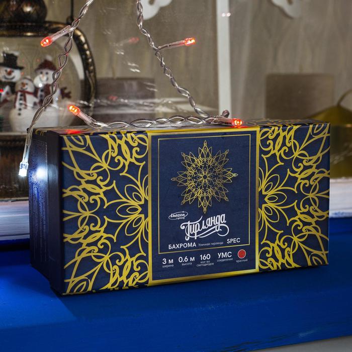 Гирлянда «Бахрома» 3 × 0.6 м, IP44, УМС, прозрачная нить, 160 LED, свечение красное, мерцание белым, 220 В