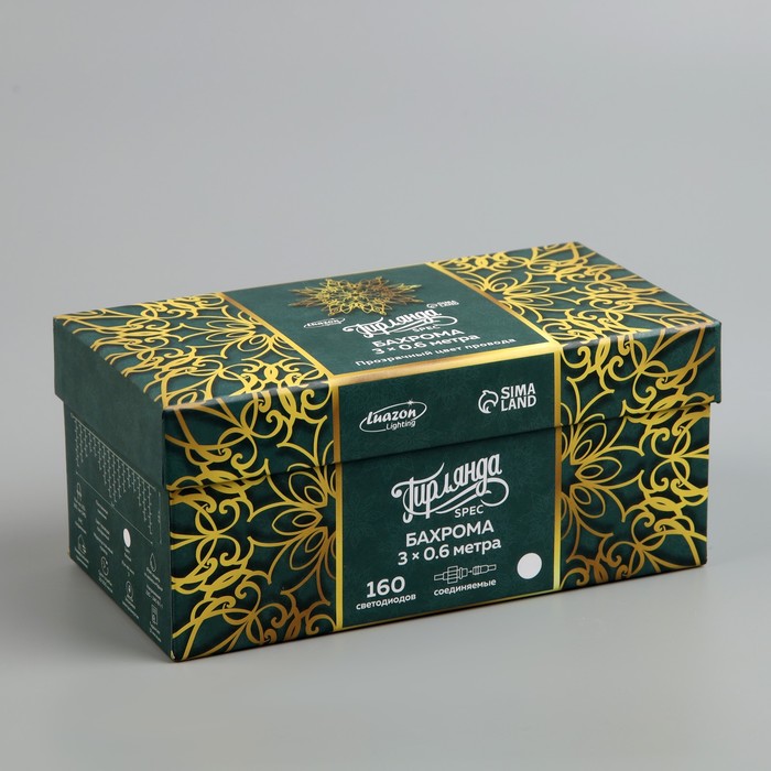 Гирлянда «Бахрома» 3 × 0.6 м, IP44, УМС, прозрачная нить, 160 SMD-LED, свечение белое, 220 В