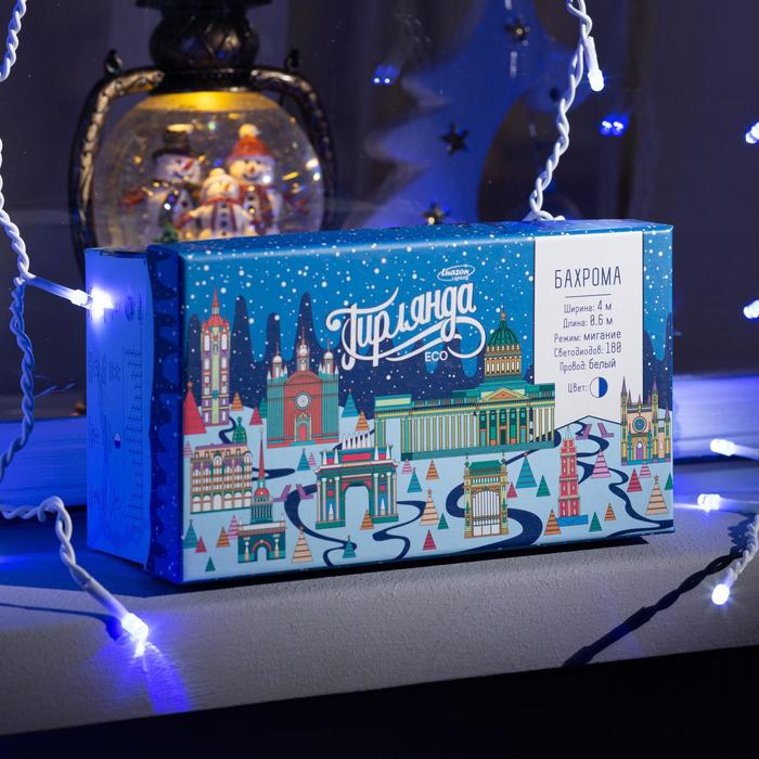 Гирлянда «Бахрома» 4 × 0.6 м, IP44, белая нить, 180 LED, свечение бело-синее, мигание, 220 В