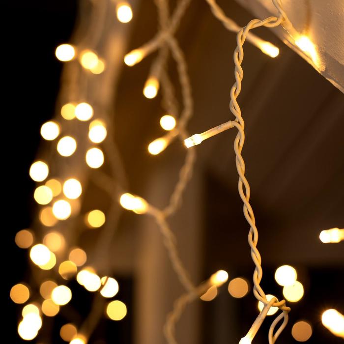 Гирлянда «Бахрома» 4 × 0.6 м, IP44, белая нить, 180 LED, свечение тёплое белое, 8 режимов, 220 В