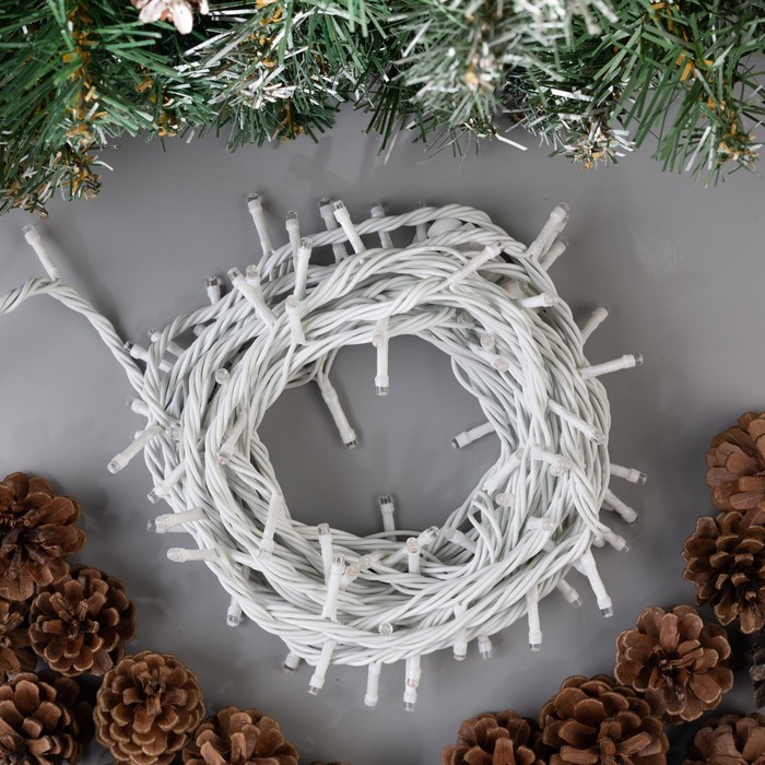 Гирлянда «Нить» 10 м, IP44, УМС, белая нить, 100 LED, свечение жёлтое, 220 В