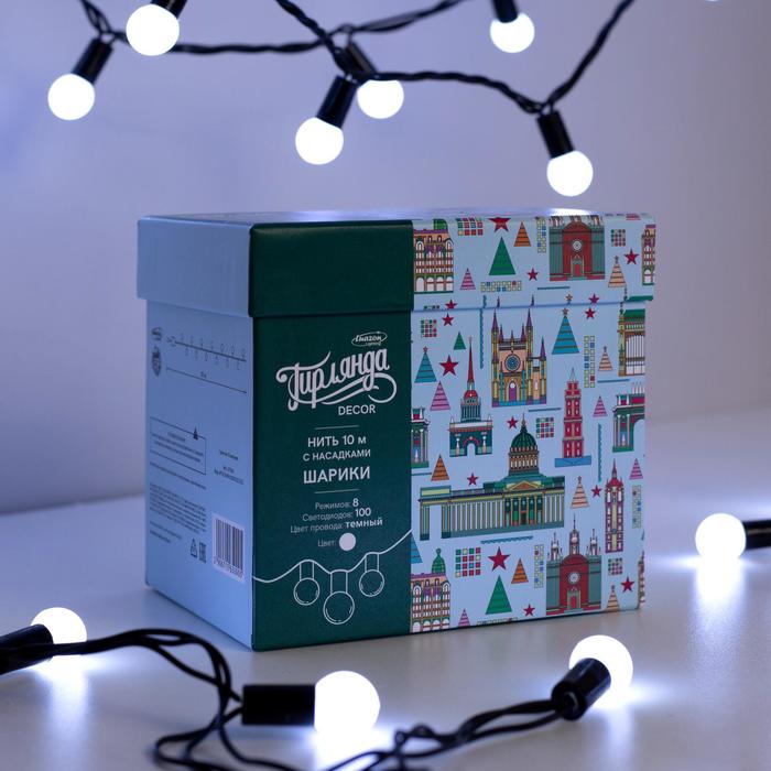 Гирлянда «Нить» 10 м с насадками «Шарики 1.5 см», IP44, тёмная нить, 100 LED, свечение белое, 8 режимов, 220 В