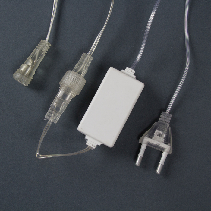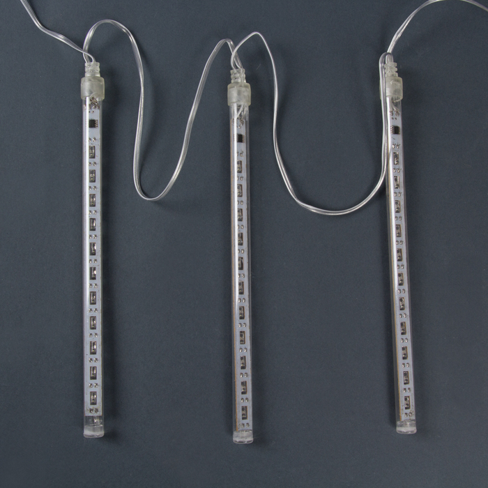 Гирлянда «Нить» 2.4 м с насадками «Сосульки 20 см», IP44, УМС, прозрачная нить, 96 LED, свечение белое с эффектом стекания, 12 В