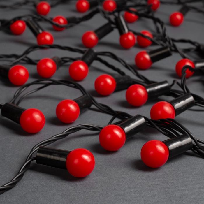 Гирлянда «Нить» 20 м с насадками «Шарики 1.5 см», IP44, тёмная нить, 200 LED, свечение красное, 8 режимов, 220 В